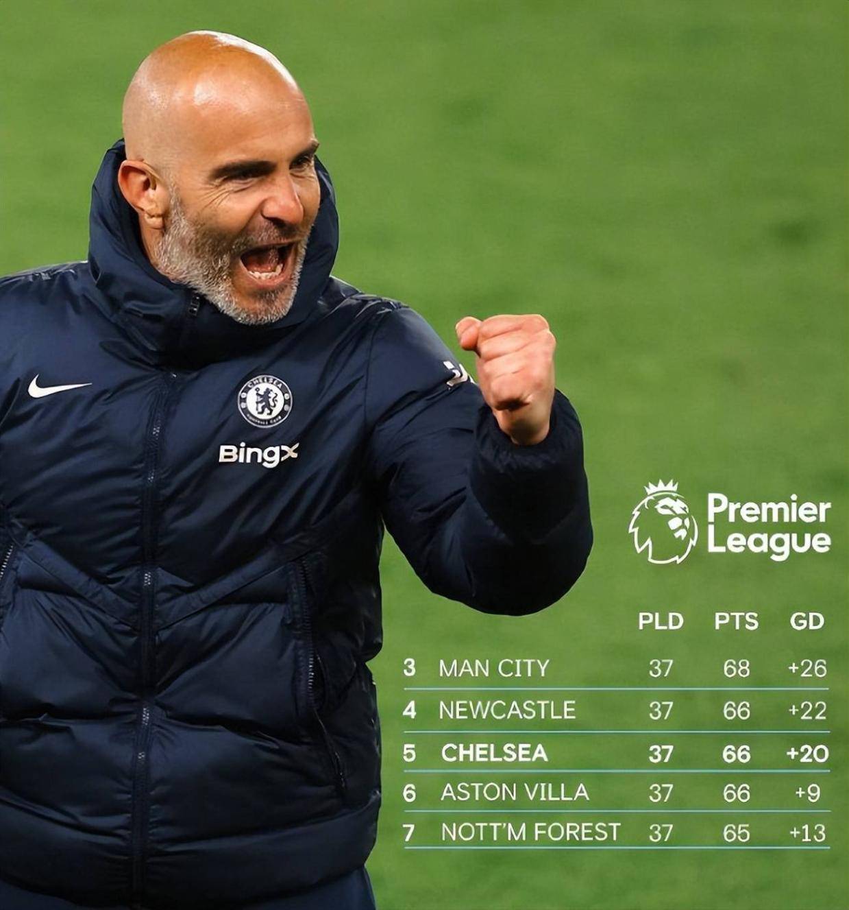 若切尔西与诺丁汉森林战平,切尔西的积分将达到67 分。此时,切尔西就需要看另外两场比赛的结果。具体来说,切尔西需要维拉在客场不胜曼联,或者纽卡主场输给埃弗顿。如果维拉在老特拉福德球场拿到 1 分或者输掉比赛,又或者纽卡在主场意外输给埃弗顿,那么切尔西凭借这 1 分,依然能够保住自己的欧冠资格。但如果维拉战胜曼联,同时纽卡也战胜埃弗顿,那么切尔西将被挤出前五,无缘下赛季欧冠。